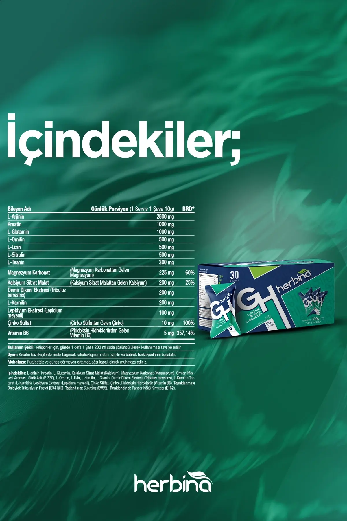 Arjinin, Kreatin, Glutamin, Tribulus, Lepidyum 30 Saşe