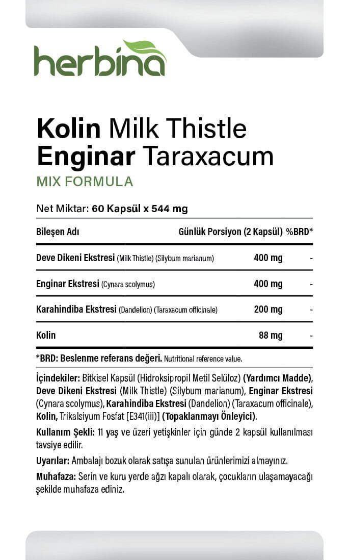 Kolin Milk Thistle Enginar Taraxacum 60 Kapsül