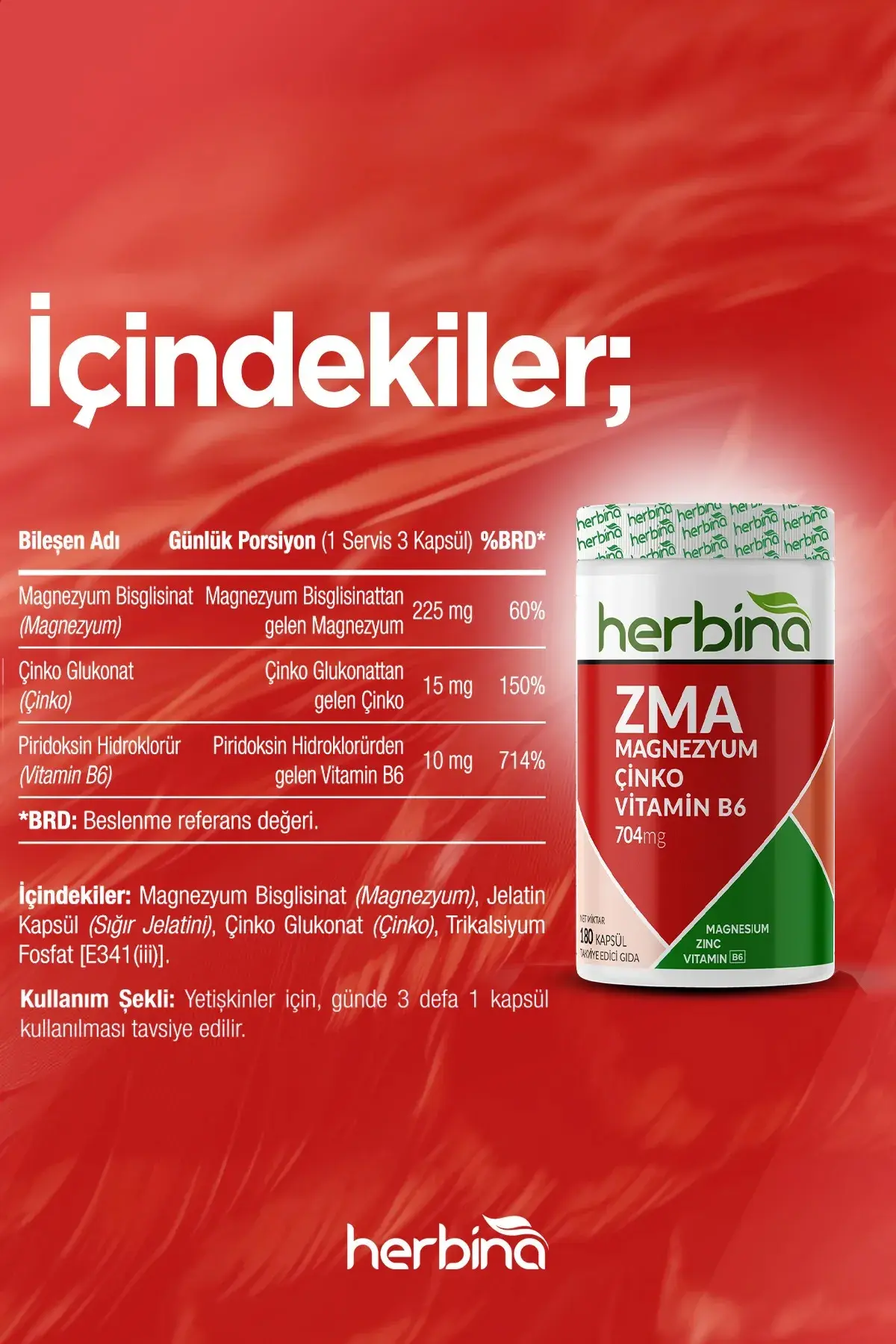 - (%60 BRD) Çinko (Çinko Glukonat): 15 mg (%150 BRD)